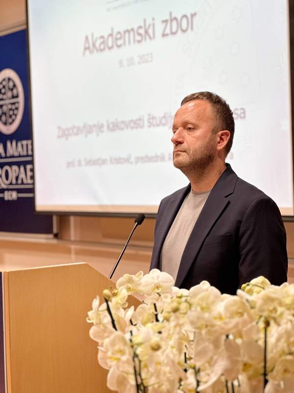 V nadaljevanju je predsednik Akademskega zbora prof. dr. Sebastjan Kristovič spregovoril o študijskem procesu in kakovosti izobraževanja ter se osredotočil na dejstvo, kako postati še boljši? »Na Alma Mater presegamo povprečje v slovenskem prostoru in tudi širše, vendar je vedno treba strmeti k izboljšavam. Mi smo tisti, ki moramo zagotoviti kakovostni študijski proces, pri čemer je bistvenega pomena, da študente aktivno vključimo, da se čutijo upoštevani in postanejo del študijskega procesa,« je bil jasen dr. Kristovič in dodal, da je recept za uspeh sestavljen iz pomembnosti odločitve, postavitve ciljev, discipline in vztrajnosti.