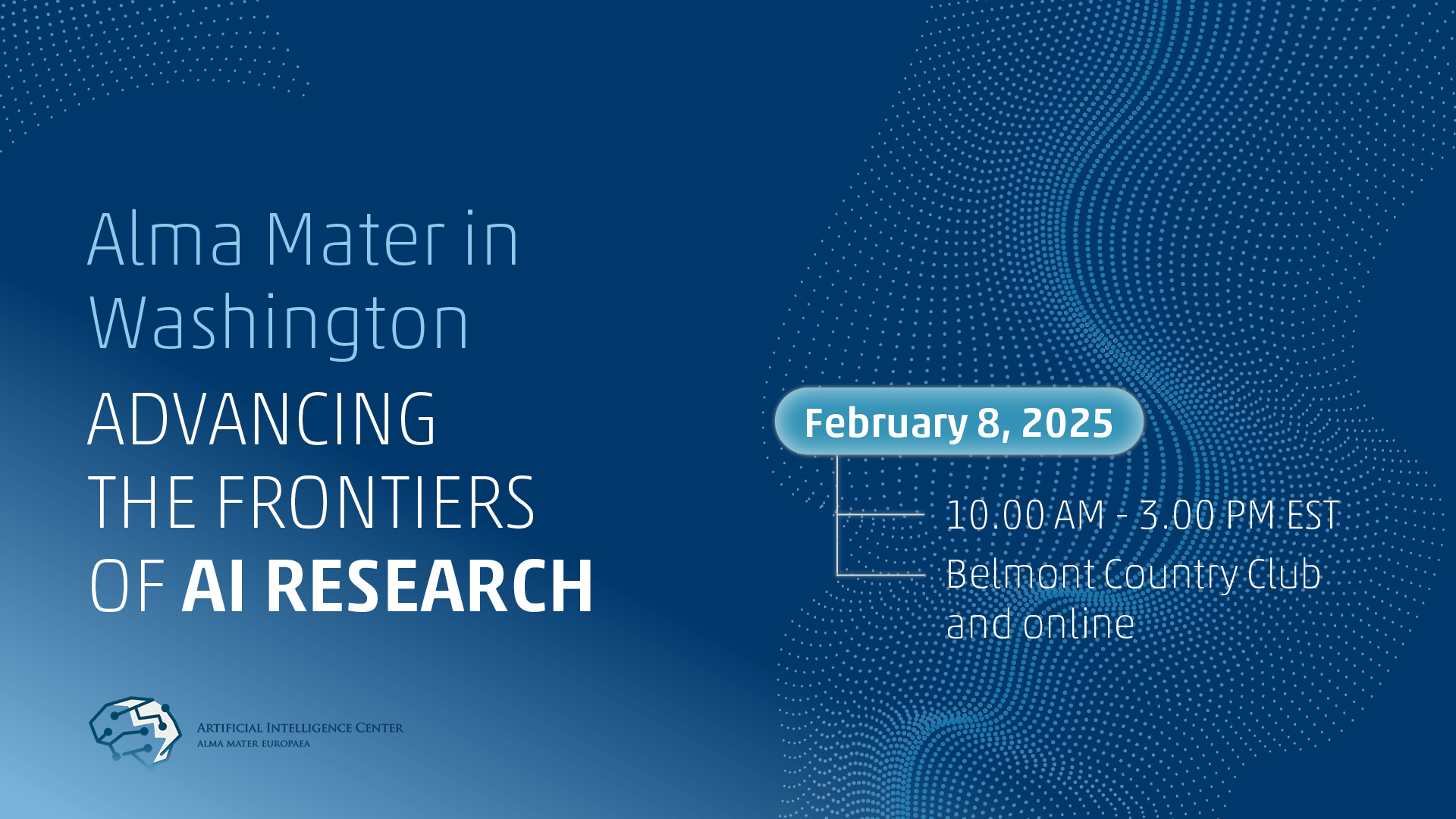 V soboto, 8. februarja 2025, ob 10.00 (EST) v Belmont Country Clubu bodo vrhunski strokovnjaki razpravljali o perečih izzivih umetne inteligence na področju zdravstva in družboslovja ter predstavili najsodobnejše napredke v umetni inteligenci ter strojnem učenju.