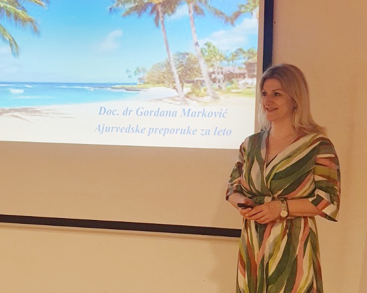 Dr. Markovićeva je z nazornimi praktičnimi primeri predstavila, kako je lahko Ajurveda vpeta v človekov vsakdan. Poslušalci so izvedeli, kako se čez poletje na zdrav način razhladimo, tako z uporabo eteričnih olj, kot so meta, sivka, koriander in druge ter s primerno prehrano. »Posebej privlačno zveni poletna ajurvedska limonada, ki jo naredimo s pomočjo 3 limet ali limon, vanili-sladkorja, jušne žlice kokosovega sladkorja, kavne žličke nasesekljanega ingverja, kavne žličke rožne vodice, 700 ml mineralne vode in 4 lističev mete,« še zaupa recept.