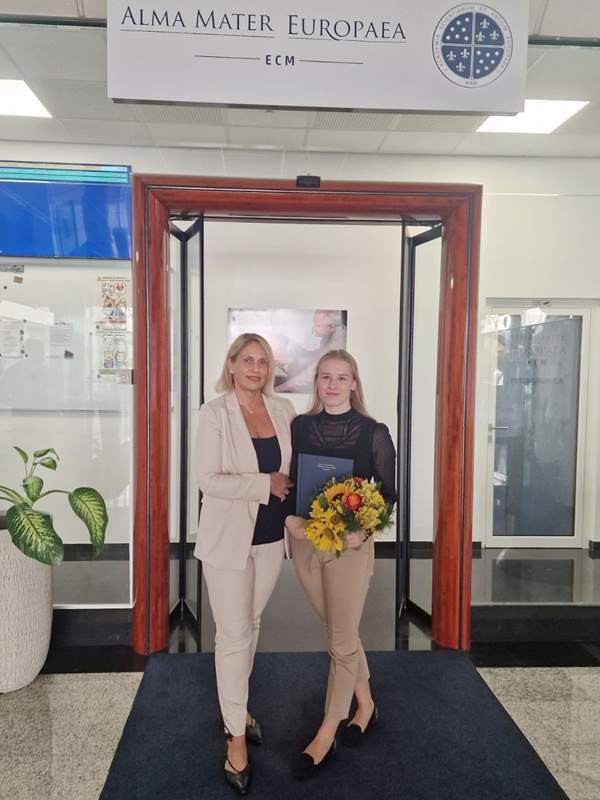 Zelo aktivna in uspešna študentka fizioterapije na Alma Mater Klara Trček, ki je tudi predsednica tutorjev na Alma Mater, je uspešno zagovarjala svoje diplomsko delo na temo učinkovitosti neinvazivne možganske stimulacije na motorično funkcijo zgornjega uda pri pacientih po možganski kapi, ki je nastalo pod mentorstvom pred. Tatjane Horvat.
