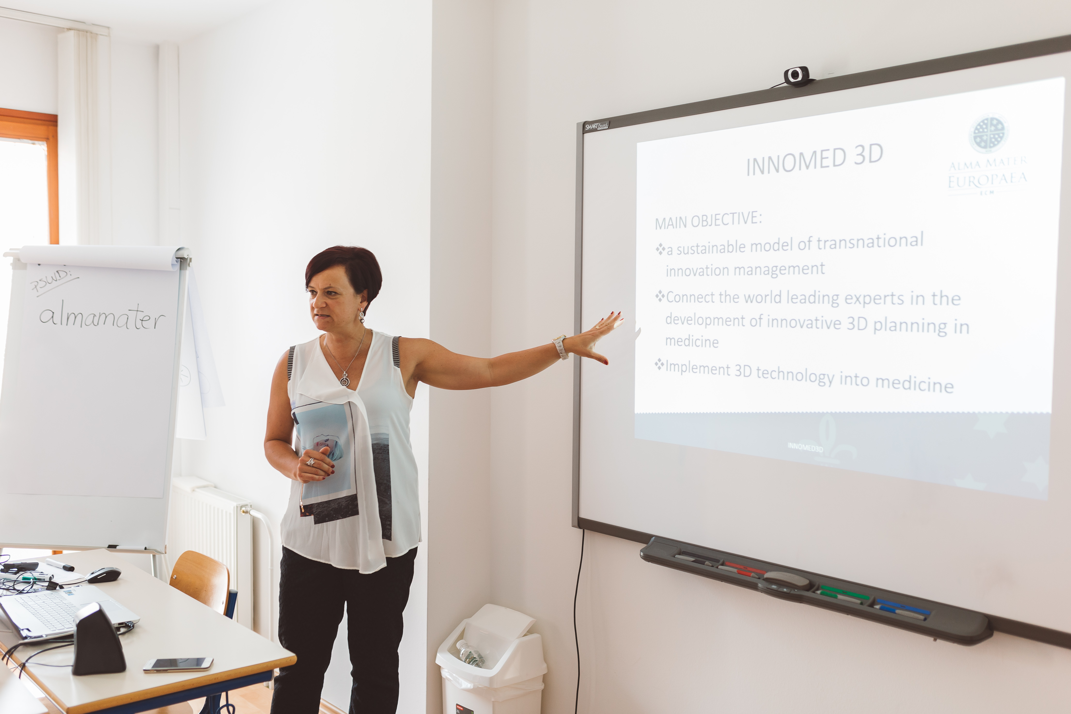 Innomed3d. Alma Mater Europaea - ECM je kot vodilni partner v projektu Innomed3d v petek, 24. 6. 2016, oddala prijavo za evropski projekt Interreg Central Europe. Ob tem je Alma Mater že gostila prvi delovni sestanek partnerjev.